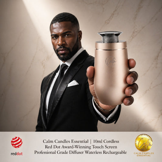 Calm Candles Essential Aroma Diffuser Mini Studio Pro: Red Dot Award-Winning Waterless Air Cordless Diffuser with Free 100ml Fragrance Oil - Type C (10,000 mah)