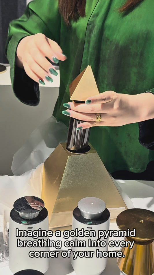 Gold Matte Ultrasonic Pyramid Aroma Diffuser – Red Dot Award-Winning Design | App-Controlled LED & Free 150 ml Oil