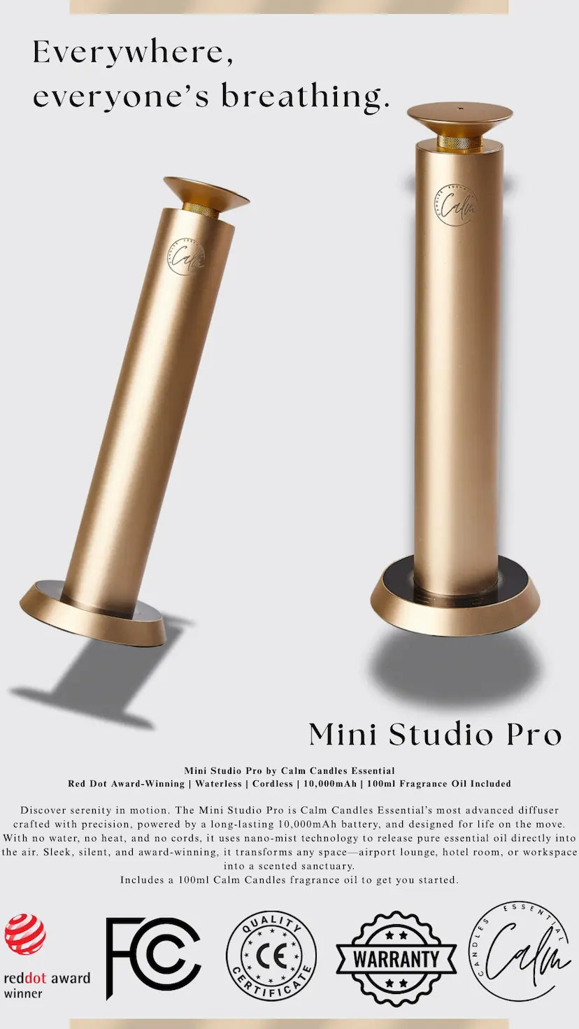 Calm Candles Essential Aroma Diffuser Mini Studio Pro: Red Dot Award-Winning Waterless Air Cordless Diffuser with Free 100ml Fragrance Oil - Type C (10,000 mah)