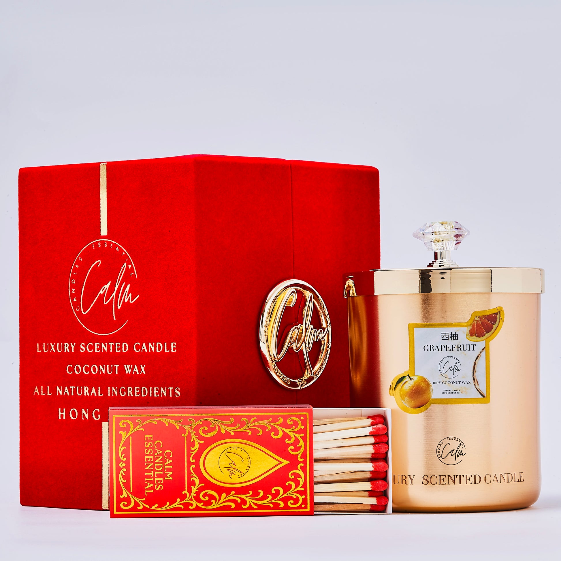 Calm Candles Essential – Grapefruit Gold Velvet Collection | Made with Premium Coconut Wax & Cherry Wooden Wick