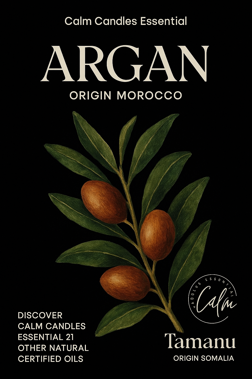 Calm Candles Essential - Organic IFRA Certified Argan Essential Oil - 100% Pure Natural Aromatherapy , Hair Care, Skin Care, Anti-aging. (10mL)