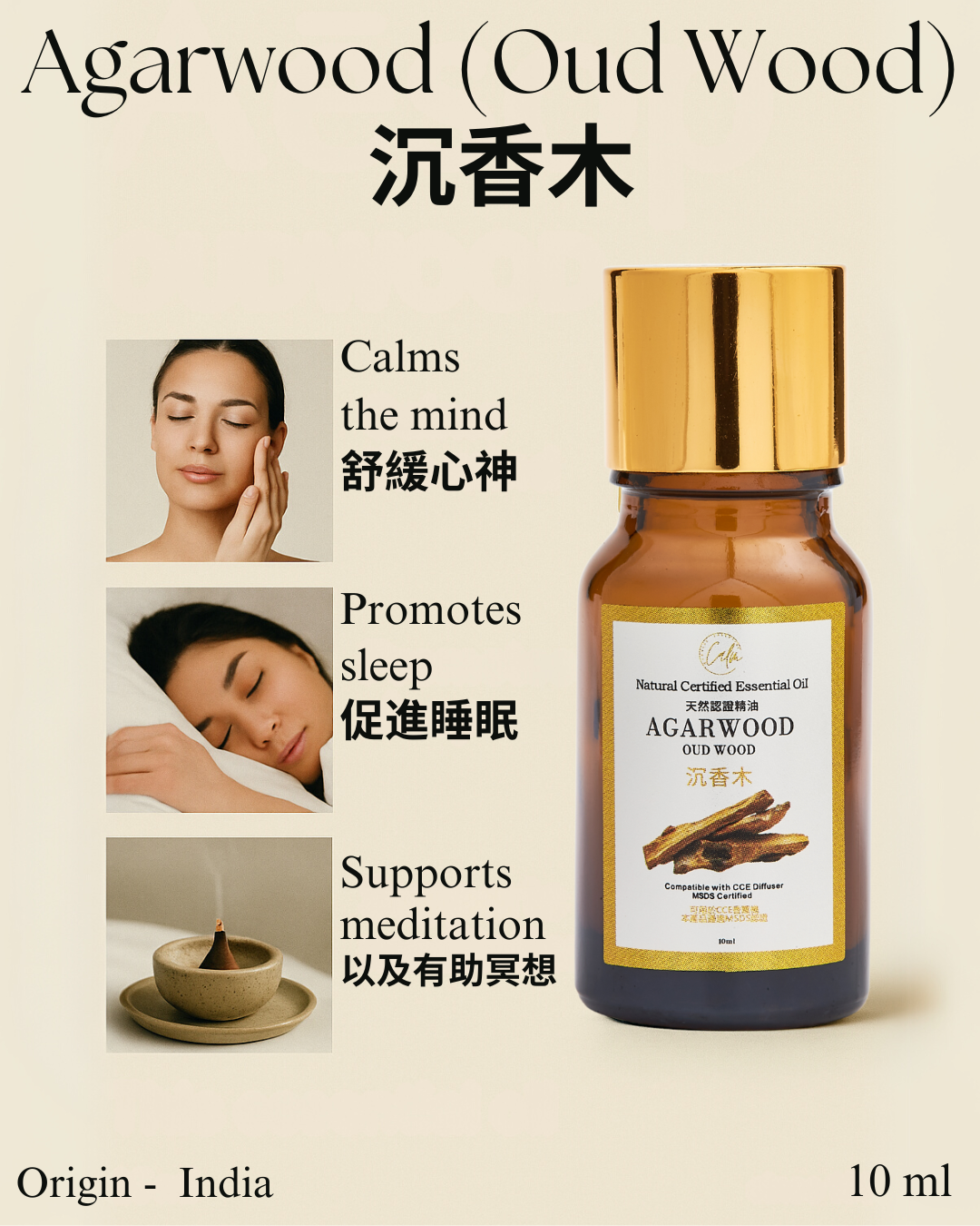 產地: 採自印度可持續培育的沉香樹,以其珍稀樹脂與深沉冥想氣息而聞名。