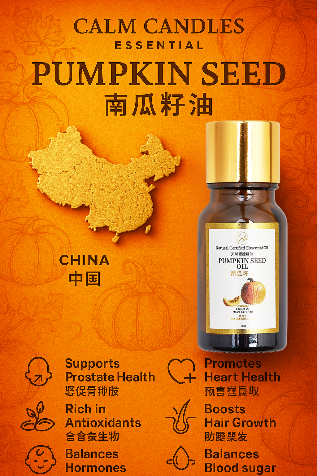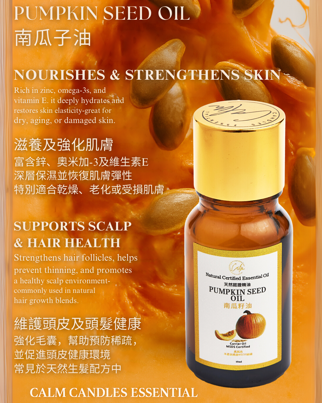 Calm Candles Essential - Pumpkin Seed Oil Certified Organic, Undiluted, Natural Essential Oil - Nourishing, Rejuvenating & Healing Aromatherapy - Enhance Skin Health & Overall Well-Being - 10ml