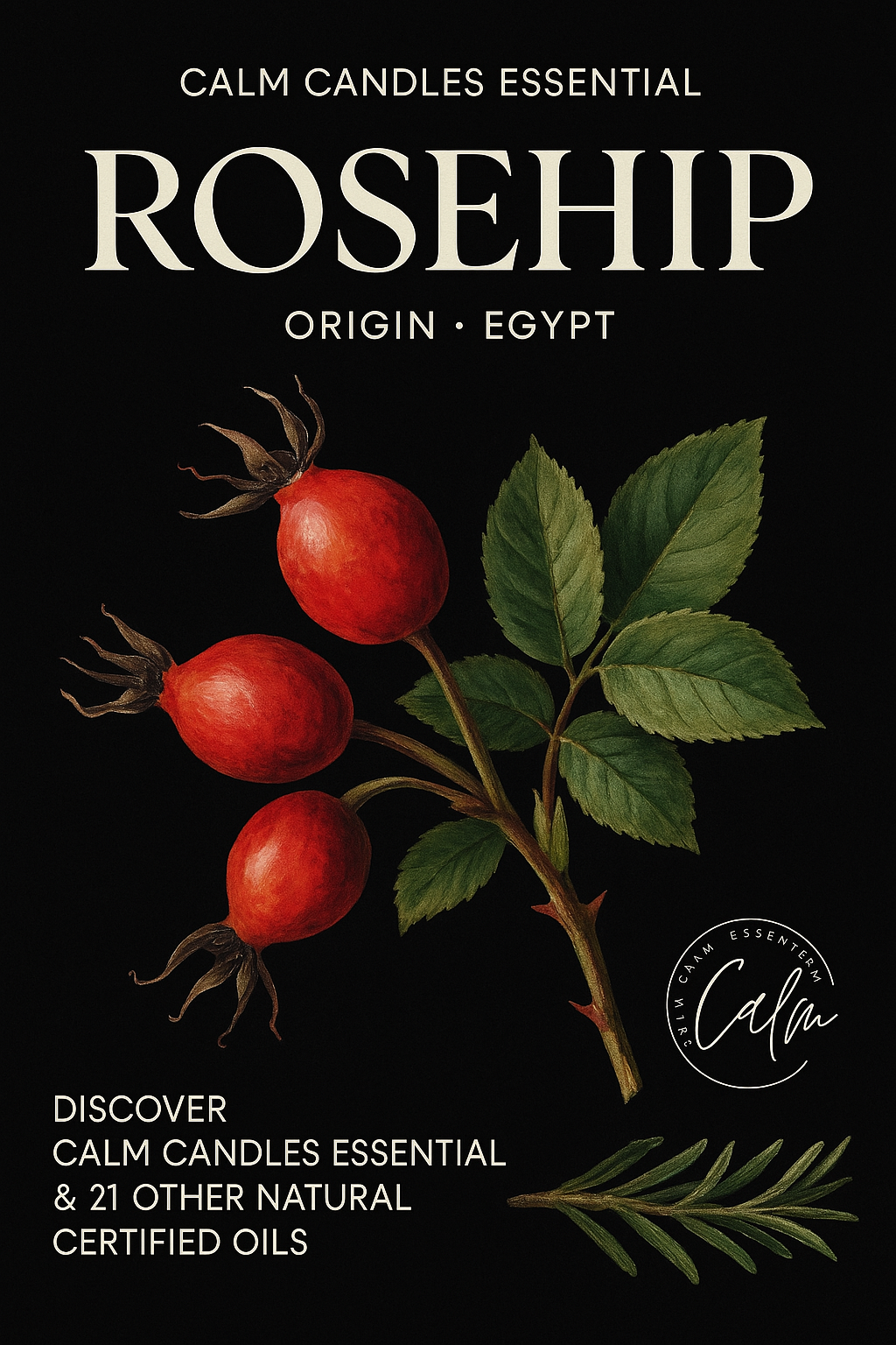 Calm Candles Essential - Rosehip Certified Organic, Undiluted, Natural Essential Oil - Healing , Pure & Refreshing Aromatherapy - Clear Your Senses, Certified Quality for Holistic Well-Being & Respiratory Health Support - 10ml