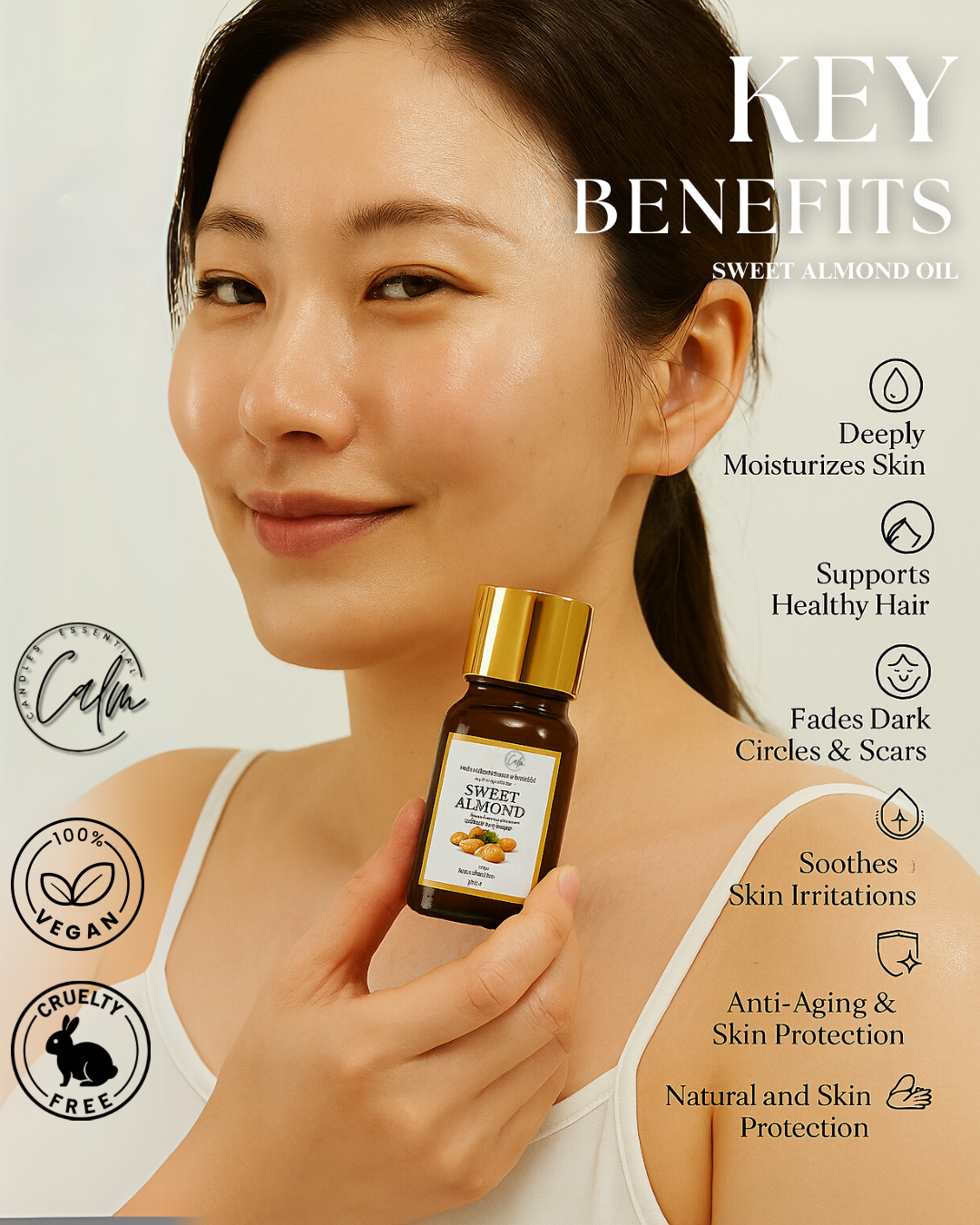 - 甜杏仁油:溫和且易於吸收,非常適合敏感肌膚