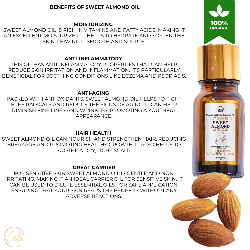 Calm Candles Essential - Sweet Almond IFRA Certified Organic, Undiluted, Natural Essential Oil - Uplifting, Pure & Invigorating Carrier 10ml