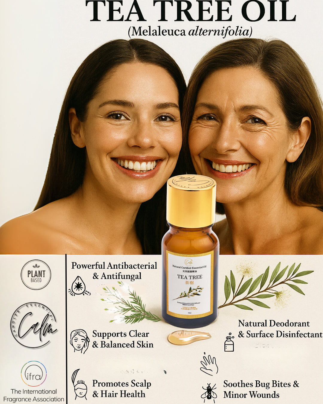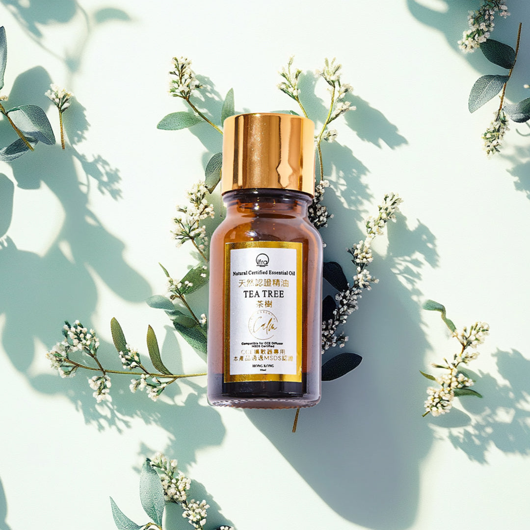 從茶樹的葉子中提取,這種精油具有清新、藥用的香氣。以其強大的抗菌和抗炎特性而聞名,經常用於治療皮膚問題和感染。