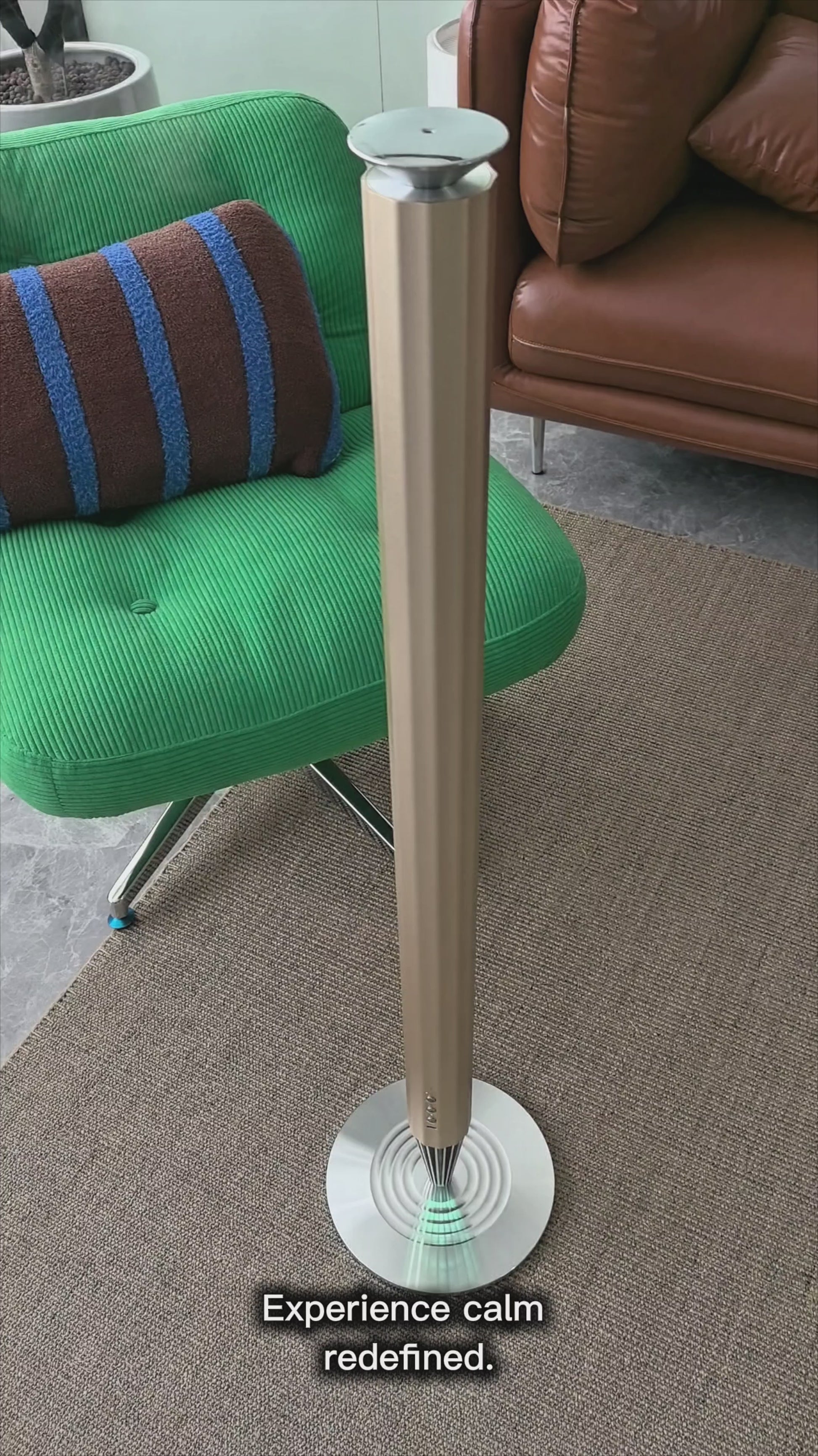 Calm Space 2000 — Champagne Gold, cordless luxury diffuser with 20,000mAh power, Smart Bluetooth control, and LED stand base.