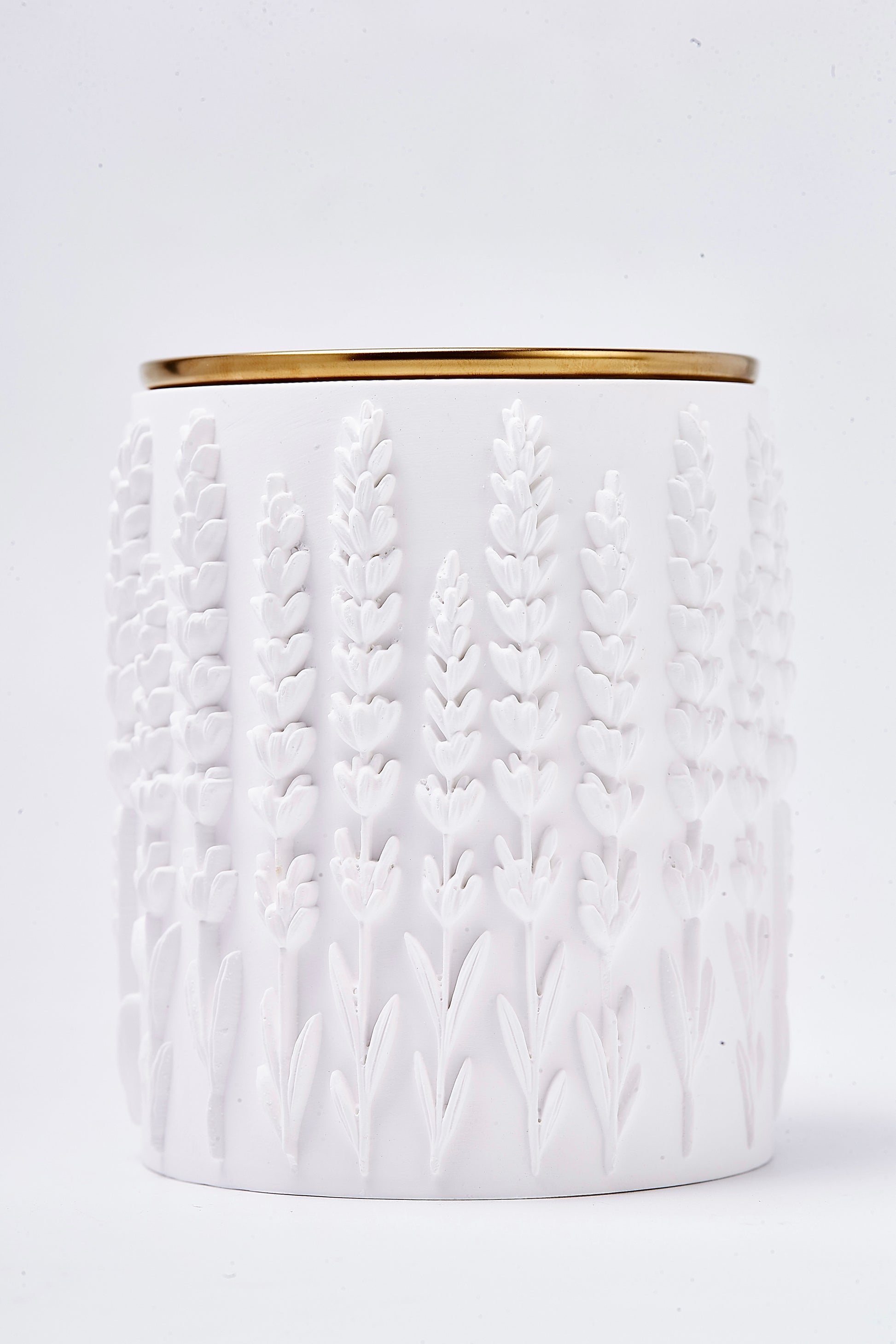 English Lavender Scented Coconut Wax Candle in Porcelain Jar – 8oz infused with lavender, patchouli, fougere Botanical Vegan Candle with Wood Wick | Calm Candles Essential