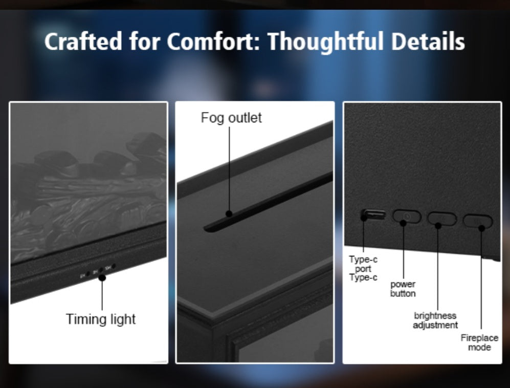 To enhance your experience, each diffuser comes with 3 complimentary Calm Candles Essential oils, carefully chosen to harmonize with the fireplace’s calming glow:
