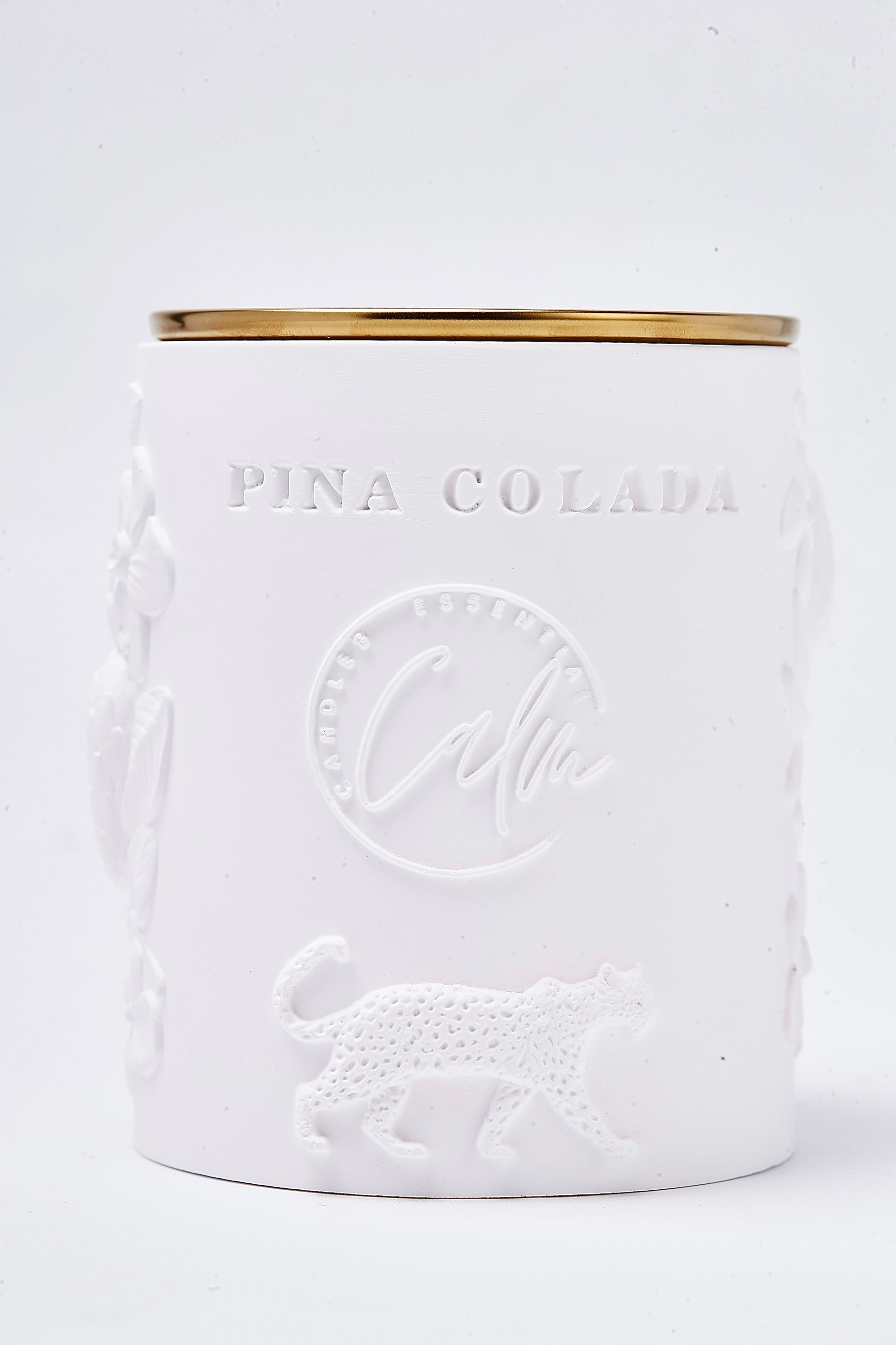 Piña colada Scented Coconut Wax Candle in Porcelain Jar – 8oz Neroli, pineapple, coconut Vegan Candle with Wood Wick | Calm Candles Essential